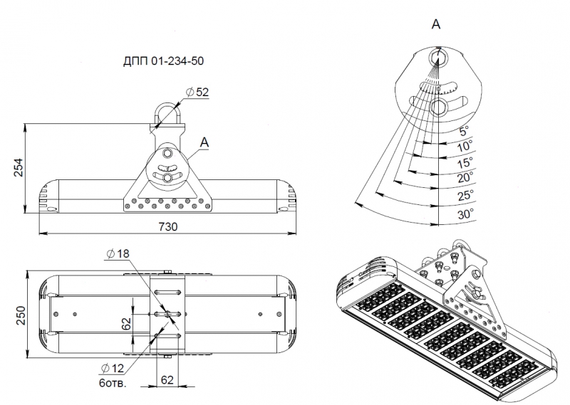 Промышленный светильник на кронштейне ДПП 07-234-850-Д120 Паспорт Кривая силы света IES-файл Сертификат Чертеж Промышленный светодиодный светильник на кронштейне Ферекс ДПП 07-234-850-Д120. Потребляемая мощность - 234 Вт, световой поток - 30397 Лм, габариты - 730*255*250 мм, цвет свечения - 4700-5300K, гарантия - 5 лет. Технические характеристики: Производитель Ферекс Артикул ДПП 07-234-850-Д120 Питающее напряжение, В / диапазон частот Гц AC 110-285 / 47-63 Потребляемая мощность, Вт 234 Степень защиты, IP 66 Цвет свечения, К 4700-5300K Габаритные размеры светильника, ВШГ, мм 730*255*250 мм, Масса светильника, нетто, кг 10.5 Световой поток, лм 30397 Тип крепления накладной Страна происхождения Россия Гарантия 5 лет Показать больше характеристик: Выберите нужные параметры: 47880 руб. под заказ Количество Купить Добавить к сравнению Промышленный светильник на кронштейне ДПП 07-234-850-Д120 Светодиодные светильники ДПП 07-234-50-Д120 (прежний артикул ДПП 01-234-50-Д120) ТМ "Ферекс" удобно использовать для организации системы освещения в производственных и складских помещениях, а также для освещения спортивных объектов. Прочный поворотный кронштейн позволяет выбирать направление светового потока и подстраивать параметры схемы освещения под определенные требования. Корпуса светильников и кронштейны изготавливаются из алюминиевого сплава со специальным анодированным или полимерным покрытием. Степень защиты от внешнего воздействия – IP66 позволяет применять светильники ДПП в помещениях с повышенной влажностью. Является заменой светильника ДПП 01-245-50-Д120. Дополнительные характеристики Количество диодов, шт. 108 Источник света LED Материал корпуса сплав алюминия Материал рассеивателя прозрачный поликарбонат Срок службы, ч 50000 Тип кривой силы света (КСС)/угол раскрытия луча Д120 Производитель светодиодов Nichia Световой поток светодиодов, Лм 34560 Рабочий ток светодиодов, mA 700 Потребляемый ток светильника не более, А 1,1 Класс защиты от поражения электрическим током I Индекс цветопередачи Ra > 70 Пульсации светового потока не более, % 1 Диапазон рабочих температур, ºС -40... +50 Вид климатического исполнения У2 Также смотрите категории светильников - Освещение для склада - Влагозащищенные светильники Способы оплаты Доставка Гарантия и возврат 1. Оплата наличными для физических лиц при получении (для Москвы и МО при доставке курьерами G-Lights.RU или самовывозе (по некоторым товарам "под заказ" может потребоваться предоплата). 2. Оплата банковской картой в офисе (только при самовывозе) 3. Безналичный перевод для физических лиц (оплата по реквизитам банковским переводом) 4. Оплата картой на сайте при оформлении заказа или по ссылке на оплату картой, отправленной нашими менеджерами после согласования условий заказа 5. Безналичная оплата для юридических лиц по счету. Подробнее с информацией о способах оплаты вы можете ознакомиться в соответствующем разделе нашего сайта: Способы оплаты 1. Самовывоз из офиса "МДА Лайтс". 140008, Люберцы, ул. 3-е почтовое отделение, 82. Подробнее в разделе Контакты 2. Курьерская доставка по Москве (в пределах МКАД, общая масса заказа не более 7 кг) - 389 рублей. 3. Автодоставка по Москве (в пределах МКАД, общая масса заказа свыше 7 кг) - 1000 рублей 4. Доставка по Московской области - 1500 рублей в пределах МБК, за пределами МБК - стоимость согласовывается индивидуально 5. Доставка по России. Осуществляется транспортными/курьерскими