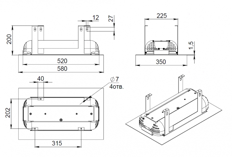 Встраиваемый светильник ДВУ 07-130-850-Д110 Паспорт Кривая силы света IES-файл Сертификат Чертеж Встраиваемый уличный светодиодный светильник ДВУ 07-130-850-Д110. Потребляемая мощность - 130 Вт, световой поток - 16170 Лм, габариты - 580*350*200 мм, встраиваемый размер (ДxШ) - 580x350 мм, цвет свечения - 4700-5300K, гарантия - 5 лет. Технические характеристики: Производитель Ферекс Артикул ДВУ 07-130-850-Д110 (внутр. крепление) ДВУ 27-130-850-Д110 (наружн. крепление) Питающее напряжение, В / диапазон частот Гц AC 110-285 / 47-63 Потребляемая мощность, Вт 130 Степень защиты, IP 66 Цвет свечения, К 4700-5300K Габаритные размеры светильника, ВШГ, мм 580*350*200 мм, встраиваемый размер (ДxШ) - 580x350 мм, Масса светильника, нетто, кг 10 Световой поток, лм 16170 Тип крепления встраиваемый Страна происхождения Россия Гарантия 5 лет Показать больше характеристик: Выберите нужные параметры: 28560 руб. под заказ Количество Купить Добавить к сравнению Встраиваемый светильник ДВУ 07-130-850-Д110 Уличные светодиодные светильники серии ДВУ производства «Ферекс» предназначены для общего освещения дорог, площадей, улиц, автозаправок. Предусмотрено 2 способа крепления: внутренний или внешний. Корпус светильников выполнен из сплава алюминия и листовой стали толщиной 1,5 мм. Светильники ДВУ обеспечивают большой угол излучения для равномерного освещения всей площади. Высокая степень защиты от воздействий среды (IP66) позволяет полностью нивелировать влияние погодных условий на работу оборудования. Дополнительные характеристики Количество диодов, шт. 48 Источник света LED Материал корпуса сплав алюминия Материал рассеивателя опаловый акрил Срок службы, ч 50000 Тип кривой силы света (КСС)/угол раскрытия луча Д110 Производитель светодиодов Nichia Световой поток светодиодов, Лм 19200 Рабочий ток светодиодов, mA 700 Потребляемый ток светильника не более, А 0,62 Класс защиты от поражения электрическим током I Индекс цветопередачи Ra > 70 Пульсации светового потока не более, % 0,01 Диапазон рабочих температур, ºС -40... +50 Вид климатического исполнения У2 Способы оплаты Доставка Гарантия и возврат 1. Оплата наличными для физических лиц при получении (для Москвы и МО при доставке курьерами G-Lights.RU или самовывозе (по некоторым товарам "под заказ" может потребоваться предоплата). 2. Оплата банковской картой в офисе (только при самовывозе) 3. Безналичный перевод для физических лиц (оплата по реквизитам банковским переводом) 4. Оплата картой на сайте при оформлении заказа или по ссылке на оплату картой, отправленной нашими менеджерами после согласования условий заказа 5. Безналичная оплата для юридических лиц по счету. Подробнее с информацией о способах оплаты вы можете ознакомиться в соответствующем разделе нашего сайта: Способы оплаты 1. Самовывоз из офиса "МДА Лайтс". 140008, Люберцы, ул. 3-е почтовое отделение, 82. Подробнее в разделе Контакты 2. Курьерская доставка по Москве (в пределах МКАД, общая масса заказа не более 7 кг) - 389 рублей. 3. Автодоставка по Москве (в пределах МКАД, общая масса заказа свыше 7 кг) - 1000 рублей 4. Доставка по Московской области - 1500 рублей в пределах МБК, за пределами МБК - стоимость согласовывается индивидуально 5. Доставка по России. Осуществляется транспортными/курьерскими компаниями по тарифам перевозчика. Доставка до терминалов ТК "Деловые Линии" и ПВЗ СДЭК в городе Москва осуществляется бесплатно. ВНИМАНИЕ: В зависимости от суммы заказа и номенклату