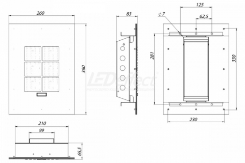 Встраиваемый светильник для АЗС КЕДР СВП 50 Вт LE-СВП-32-050-1899-67Х Чертеж Встраиваемый промышленный светодиодный светильник для АЗС КЕДР СВП 50 Вт LE-СВП-32-050-1899-67Х. Потребляемая мощность - 50 Вт, световой поток - 6870 Лм, габариты - 360*260*83 мм, цвет свечения - 5000K, гарантия - 3 года. Технические характеристики: Производитель ЛЕД-Эффект Артикул LE-СВП-32-050-1899-67Х Питающее напряжение, В / диапазон частот Гц 175-264 / 50-60 Потребляемая мощность, Вт 50 Степень защиты, IP 67 Цвет свечения, К 5000K Габаритные размеры светильника, ВШГ, мм 360*260*83 мм, Масса светильника, нетто, кг 3.7 Световой поток, лм 6870 Тип крепления встраиваемый Страна происхождения Россия Гарантия 3 года Показать больше характеристик: Выберите нужные параметры: 18832 руб. под заказ Количество Купить Добавить к сравнению Встраиваемый светильник для АЗС КЕДР СВП 50 Вт LE-СВП-32-050-1899-67Х КЕDR 2.0 АЗС LE-СВП-32-050-1899-67Х – встраиваемые промышленные светодиодные светильники нового поколения. Светильники серии КЕDR 2.0 АЗС разработаны с применением инновационной технологии безреберного теплоотвода FINFREE, что позволило поднять эффективность световых приборов, с учетом всех потерь, до 140 лм/Вт. Светильники серии КЕDR 2.0 АЗС обладают самыми тонкими корпусами в классе профессионального освещения, толщина корпуса всего 7 мм. Светильники серии КЕDR 2.0 АЗС предназначены для встраиваемого монтажа в подвесные потолки. Светильники серии КЕDR 2.0 АЗС по умолчанию оснащаются светодиодами холодного белого свечения (5000К), по требованию заказчика могут устанавливаться светодиоды нейтрально-белого (4000К) или теплого белого (3000К) свечения. Корпуса светильников окрашены порошковой краской, конструктивные элементы выполнены из нержавеющей стали и устойчивы к воздействиям окружающей среды. Внешняя установочная рамка изготавливается с учетом размеров, предоставляемых заказчиком, также рамка может быть окрашена в любой цвет по шкале RAL. Светильники обладают высокой степенью защиты от воздействия окружающей среды – IP67. Преимущества Высокая эффективность светильников более 140 лм/Вт; Светодиоды фирмы NICHIA (Япония); Экономия электроэнергии более чем в 3,5 раза по сравнению со светильниками с лампами ДРЛ 125-700 Вт; Тонкий корпус, толщина всего 7 мм; Инновационная технология отвода тепла; Рассеиватель выполнен из прочного светостабилизированного поликарбоната, толщина 2 мм; Возможна замена источника питания; Легкий вес световой установки; Моментальное включение светильника при низких температурах; Простой монтаж; Не требует специального обслуживания; Не требует специальной утилизации; Степень защиты IP 67; Рабочий ресурс более 50 000 часов. Применяются для освещения АЗС; Промышленных территорий; Складских терминалов; Цехов. Дополнительные характеристики Количество диодов, шт. 144 Источник света LED Материал корпуса алюминий, нержавеющая сталь Цвет корпуса серый Срок службы, ч 50000 Тип кривой силы света (КСС)/угол раскрытия луча КСС Д Производитель светодиодов Nichia Класс защиты от поражения электрическим током I Индекс цветопередачи Ra > 70 Пульсации светового потока не более, % 1 Диапазон рабочих температур, ºС -60... +50 Вид климатического исполнения УХЛ 1 Способы оплаты Доставка Гарантия и возврат 1. Оплата наличными для физических лиц при получении (для Москвы и МО при доставке курьерами G-Lights.RU или самовывозе (по некоторым товарам "под заказ" может потребоваться п