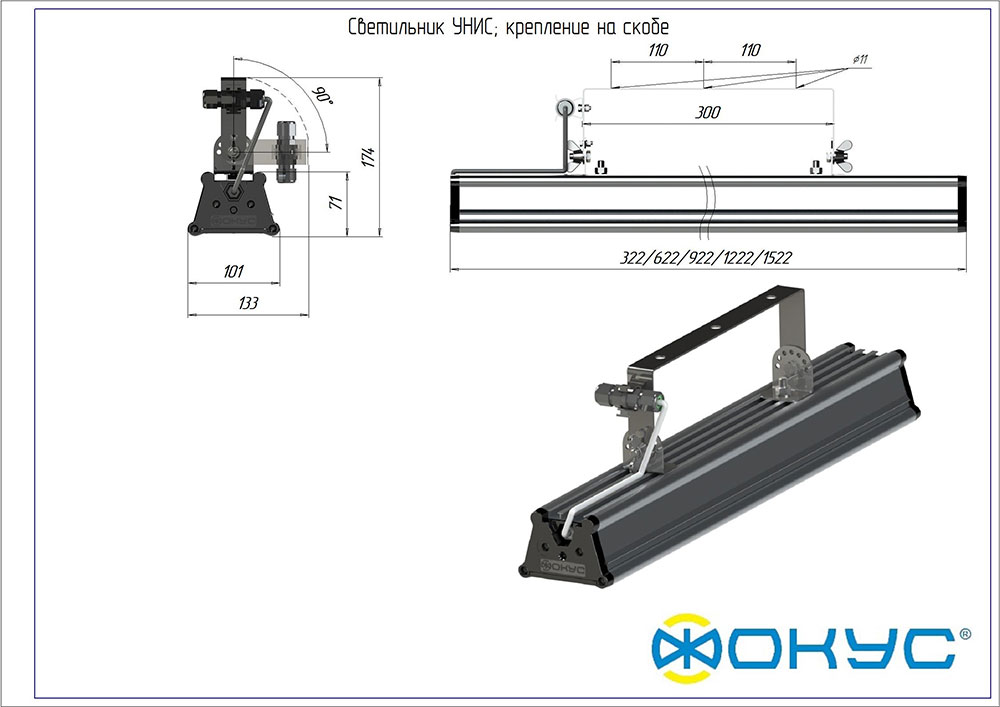 Универсальный экономичный светильник УНИС-120 (скоба) IES-файл Чертеж Универсальный экономичный светодиодный светильник УНИС-120. Потребляемая мощность - 120 Вт, световой поток - 14000 Лм, габариты - 1222*174*101 мм, цвет свечения - 4000K, гарантия - 5 лет. Технические характеристики: Производитель Фокус Артикул УНИС-120 (скоба) УНИС-120 (трос) УНИС-120 (потолочное крепление) Питающее напряжение, В / диапазон частот Гц AC 170-264 / DC 200-370 / 50-60 Потребляемая мощность, Вт 120 Степень защиты, IP 67 Цвет свечения, К 4000K Габаритные размеры светильника, ВШГ, мм 1222*174*101 мм, Масса светильника, нетто, кг 5 Световой поток, лм 14000 Тип крепления накладной Страна происхождения Россия Гарантия 5 лет Показать больше характеристик: Выберите нужные параметры: 19485 руб. под заказ Количество Купить Добавить к сравнению Универсальный экономичный светильник УНИС-120 (скоба) УНИС - это серия экономичных и привлекательных светодиодных светильников универсального типа с высоким уровнем IP67. Корпус традиционно выполнен из анодированного алюминия, устойчивого к коррозии и делает возможным использование в помещениях с повышенной влажностью и в уличных условиях (УХЛ 1). В базовой комплектации предусмотрено три варианта стекол: призматическое (11600 лм), прозрачное (14000 лм) и молочное (11600 лм) из оптического поликарбоната. Модели УНИС предназначены для производственного, торгового, архитектурного и общественного освещения как внутри, так и снаружи помещений. Комфортную обстановку поможет создать наиболее благоприятная для создания среды работы и отдыха цветовая температура светодиодов в 4000 К (опционально добавлены 3000 и 5000 К). Светильники легко соединяются между собой под углами 90 градусов (Г-, Т- и Х-образные соединители) и в единую линию, что позволяет успешно использовать эти светильники в проектах крупных и среднеформатных торговых площадей с различной высотой подвеса. Основные преимущества Cветодиоды от ведущих мировых производителей. Доступная модель, обладающая взвешенными характеристиками. Широкий диапазон питающих напряжений AC/DC. Высокий срок службы и исключительная надежность. Отсутствие эксплуатационных расходов. Нулевая пульсация. Высокая степень защиты IP 67 в базовой комплектации. Гарантийный срок эксплуатации светильника - 5 лет. Дополнительные характеристики Источник света LED Материал корпуса алюминий Материал рассеивателя оптический поликарбонат Тип кривой силы света (КСС)/угол раскрытия луча Г1Д Класс защиты от поражения электрическим током I Индекс цветопередачи Ra > 70 Диапазон рабочих температур, ºС -60... +45 Вид климатического исполнения УХЛ 1 Способы оплаты Доставка Гарантия и возврат 1. Оплата наличными для физических лиц при получении (для Москвы и МО при доставке курьерами G-Lights.RU или самовывозе (по некоторым товарам "под заказ" может потребоваться предоплата). 2. Оплата банковской картой в офисе (только при самовывозе) 3. Безналичный перевод для физических лиц (оплата по реквизитам банковским переводом) 4. Оплата картой на сайте при оформлении заказа или по ссылке на оплату картой, отправленной нашими менеджерами после согласования условий заказа 5. Безналичная оплата для юридических лиц по счету. Подробнее с информацией о способах оплаты вы можете ознакомиться в соответствующем разделе нашего сайта: Способы оплаты 1. Самовывоз из офиса "МДА Лайтс". 140008, Люберцы, ул. 3-е почтовое 