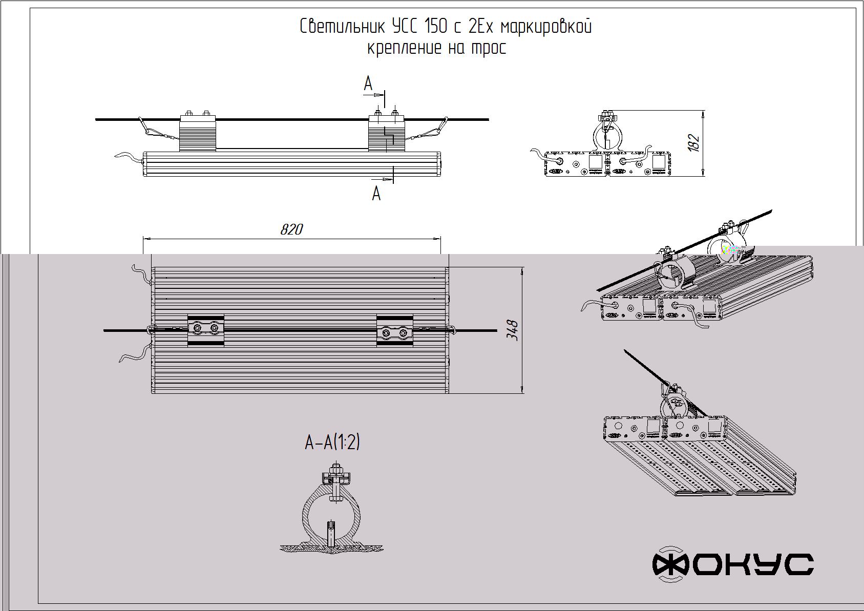 Светодиодный светильник УСС 150 2Ex (трос) Паспорт Кривая силы света IES-файл Сертификат Чертеж Взрывозащищённый светодиодный светильник УСС 150 2Ex. Потребляемая мощность - 150 Вт, световой поток - 19600 Лм, габариты - 820*348*182 мм, цвет свечения - 4000K, гарантия - 3 года. Технические характеристики: Производитель Фокус Артикул УСС 150 2Ex (консольное крепление) УСС 150 2Ex (потолочное крепление) УСС 150 2Ex (трос) Питающее напряжение, В / диапазон частот Гц AC 170-264 / DC 200-370 / 50-60 Потребляемая мощность, Вт 150 Степень защиты, IP 67 Цвет свечения, К 4000K Габаритные размеры светильника, ВШГ, мм 820*348*182 мм, Масса светильника, нетто, кг 15.1 Световой поток, лм 19600 Тип крепления подвесной Страна происхождения Россия Гарантия 3 года Показать больше характеристик: Выберите нужные параметры: 43123 руб. под заказ Количество Купить Добавить к сравнению Светодиодный светильник УСС 150 2Ex (трос) Светильник УСС 150 взрывозащищенный предназначен для освещения объектов с уровнем взрывозащиты не выше 2Ex nR IIС T6 Gc X и Ex tb IIIC T80°C Db X. Потребляемая мощность от сети переменного тока 220 Вольт— 150Вт. Является заменой светильников РКУ, РСП, СВЛ, НПП, НСП с использованием ртутных ламп ДРЛ-250. Незаменим в местах, где требуется экономия электроэнергии и очень высокая надежность. Уровень взрывозащиты 2Ex nR IIС T6 Gc X и Ex tb IIIC T80°C Db X. У светильника отсутствует стробоскопический эффект, сила света не меняется во всем диапазоне питающих напряжений. Время выхода нарежим менее 1 секунды. Для увеличения надежности светильник разделен на электрически независимые части и имеет независимые системы термостатирования. Также драйверы светодиодов оснащены запатентованной электронной системой защиты от превышения напряжения до 800 Вольт. Корпус выполнен из анодированного алюминиевого профиля со стеклом из противоударного оптического поликарбоната. Весь крепеж выполняется из нержавеющей стали. Светильник крепится на любые консоли с посадочным диаметром трубы до 65 мм. Доступны крепления на трос, потолок и для встраивания в подвесные потолки. Для обеспечения дополнительной экономии и автоматизации светильники могут быть оснащены датчиками освещенности. Данные датчики встраиваются в светильник и обеспечивают автоматическое включение/выключение светильника при заходе/восходе солнца. Функция датчика освещенности особенно актуальна для частных лиц, а также на линиях электропередач, на которых отсутствует линия для освещения. Светильники серии УСС отличают: высокая светоотдача; бесшумность во время работы; отсутствие стробоскопического эффекта и вибрации; стабильность силы света во всем диапазоне питающих напряжений; устойчивость к вибрации и вандализму; широкий диапазон рабочих температур и питающих напряжений; мгновенное включение даже при глубоких отрицательных температурах; срок службы более 20 лет. Дополнительные характеристики Источник света LED Материал корпуса алюминий Материал рассеивателя поликарбонат Тип кривой силы света (КСС)/угол раскрытия луча Д Потребляемый ток светильника не более, А 1 Класс защиты от поражения электрическим током I Индекс цветопередачи Ra > 70 Диапазон рабочих температур, ºС -60... +45 Вид климатического исполнения УХЛ1 Маркировка взрывозащиты 2Ex nR IIС T6 Gc X и Ex tb III Способы оплаты Доставка Гарантия и возврат 1. Оплата наличными для физических лиц при получении (для Москвы и МО при доставке ку