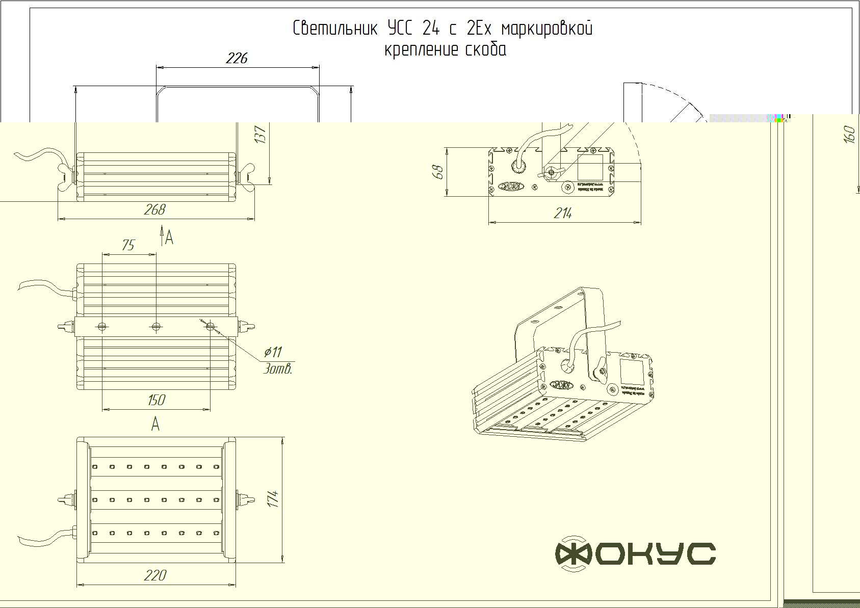 Светодиодный светильник УСС 24 2Ex (ПС 3) (скоба) Паспорт Кривая силы света IES-файл Сертификат Чертеж Взрывозащищёный светодиодный светильник УСС 24 2Ex (ПС 3). Потребляемая мощность - 28 Вт, световой поток - 3300 Лм, габариты - 268*214*68 мм, цвет свечения - 4000K, гарантия - 3 года. Технические характеристики: Производитель Фокус Артикул УСС 24 2Ex ПС 3 (консольное крепление) УСС 24 2Ex ПС 3 (потолочное крепление) УСС 24 2Ex ПС 3 (скоба) УСС 24 2Ex ПС 3 (трос) Питающее напряжение, В / диапазон частот Гц AC 170-264 / DC 200-370 / 50-60 Потребляемая мощность, Вт 28 Степень защиты, IP 67 Цвет свечения, К 4000K Габаритные размеры светильника, ВШГ, мм 268*214*68 мм, Масса светильника, нетто, кг 2.3 Световой поток, лм 3300 Тип крепления накладной Страна происхождения Россия Гарантия 3 года Показать больше характеристик: Выберите нужные параметры: 11841 руб. под заказ Количество Купить Добавить к сравнению Светодиодный светильник УСС 24 2Ex (ПС 3) (скоба) Светильник УСС 24 взрывозащищенный предназначен для освещения объектов с уровнем взрывозащиты не выше 2Ex nR IIС T6 Gc X и Ex tb IIIC T80°C Db X. Потребляемая мощность от сети переменного тока 220 Вольт— 28Вт. Является заменой светильников РКУ, РСП, СВЛ, НПП, НСП с использованием ртутных ламп ДРЛ-250. Незаменим в местах, где требуется экономия электроэнергии и очень высокая надежность. Уровень взрывозащиты 2Ex nR IIС T6 Gc X и Ex tb IIIC T80°C Db X. У светильника отсутствует стробоскопический эффект, сила света не меняется во всем диапазоне питающих напряжений. Время выхода нарежим менее 1 секунды. УСС 24 выполнен на основе светодиодов японской компании NICHIA. Светильники производятся на основе светодиодов со светоотдачей 120 лм/Вт. Для увеличения надежности светильник разделен на электрически независимые части и имеет независимые системы термостатирования. Также драйверы светодиодов оснащены запатентованной электронной системой защиты от превышения напряжения до 800 Вольт. Корпус выполнен из анодированного алюминиевого профиля со стеклом из противоударного оптического поликарбоната. Весь крепеж выполняется из нержавеющей стали. Светильник крепится на любые консоли с посадочным диаметром трубы до 65 мм. Доступны крепления на трос, потолок и для встраивания в подвесные потолки. Для обеспечения дополнительной экономии и автоматизации светильники могут быть оснащены датчиками освещенности. Данные датчики встраиваются в светильник и обеспечивают автоматическое включение/выключение светильника при заходе/восходе солнца. Функция датчика освещенности особенно актуальна для частных лиц, а также на линиях электропередач, на которых отсутствует линия для освещения. Светильники серии УСС отличают: высокая светоотдача; бесшумность во время работы; отсутствие стробоскопического эффекта и вибрации; стабильность силы света во всем диапазоне питающих напряжений; устойчивость к вибрации и вандализму; широкий диапазон рабочих температур и питающих напряжений; мгновенное включение даже при глубоких отрицательных температурах; срок службы более 20 лет. Выпускается с двумя типами рассеивателей - прозрачным и матовым. С прозрачным стеклом световой поток составляет 3300 лм, с матовым - 2310 лм. Дополнительные характеристики Источник света LED Материал корпуса алюминий Материал рассеивателя поликарбонат Тип кривой силы света (КСС)/угол раскрытия луча Д Потребляемый ток светильника не более, А 0,2 Класс защи