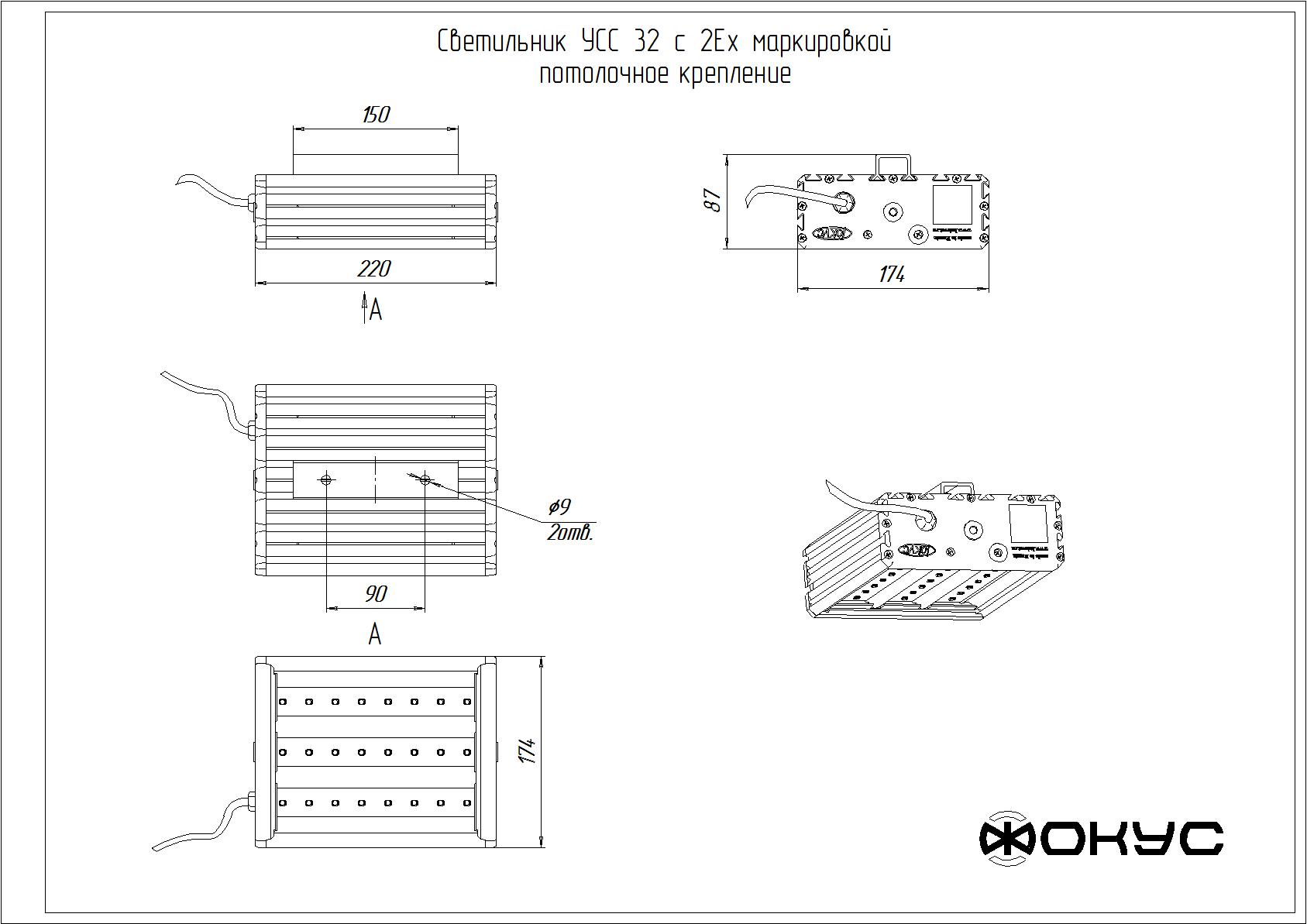Светодиодный светильник УСС 32 2Ex (потолочное крепление) Паспорт Кривая силы света IES-файл Сертификат Чертеж Взрывозащищённый светодиодный светильник УСС 32 2Ex. Потребляемая мощность - 32 Вт, световой поток - 3500 Лм, габариты - 220*174*152 мм, цвет свечения - 4000K, гарантия - 3 года. Технические характеристики: Производитель Фокус Артикул УСС 32 2Ex (консольное крепление) УСС 32 2Ex (потолочное крепление) УСС 32 2Ex (трос) УСС 32 2Ex (скоба) Питающее напряжение, В / диапазон частот Гц AC 170-264 / DC 200-370 / 50-60 Потребляемая мощность, Вт 32 Степень защиты, IP 67 Цвет свечения, К 4000K Габаритные размеры светильника, ВШГ, мм 220*174*152 мм, Масса светильника, нетто, кг 3 Световой поток, лм 3500 Тип крепления накладной Страна происхождения Россия Гарантия 3 года Показать больше характеристик: Выберите нужные параметры: 12371 руб. под заказ Количество Купить Добавить к сравнению Светодиодный светильник УСС 32 2Ex (потолочное крепление) Светильник УСС 32 взрывозащищенный предназначен для освещения объектов с уровнем взрывозащиты не выше 2Ex nR IIС T6 Gc X и Ex tb IIIC T80°C Db X. Потребляемая мощность от сети переменного тока 220 Вольт— 32Вт. Является заменой светильников РКУ, РСП, СВЛ, НПП, НСП с использованием ртутных ламп ДРЛ-250. Незаменим в местах, где требуется экономия электроэнергии и очень высокая надежность. Уровень взрывозащиты 2Ex nR IIС T6 Gc X и Ex tb IIIC T80°C Db X. У светильника отсутствует стробоскопический эффект, сила света не меняется во всем диапазоне питающих напряжений. Время выхода нарежим менее 1 секунды. УСС 32 выполнен на основе светодиодов японской компании NICHIA. Светильники производятся на основе светодиодов со светоотдачей 120 лм/Вт. Для увеличения надежности светильник разделен на электрически независимые части и имеет независимые системы термостатирования. Также драйверы светодиодов оснащены запатентованной электронной системой защиты от превышения напряжения до 800 Вольт. Корпус выполнен из анодированного алюминиевого профиля со стеклом из противоударного оптического поликарбоната. Весь крепеж выполняется из нержавеющей стали. Светильник крепится на любые консоли с посадочным диаметром трубы до 65 мм. Доступны крепления на трос, потолок и для встраивания в подвесные потолки. Для обеспечения дополнительной экономии и автоматизации светильники могут быть оснащены датчиками освещенности. Данные датчики встраиваются в светильник и обеспечивают автоматическое включение/выключение светильника при заходе/восходе солнца. Функция датчика освещенности особенно актуальна для частных лиц, а также на линиях электропередач, на которых отсутствует линия для освещения. Светильники серии УСС отличают: высокая светоотдача; бесшумность во время работы; отсутствие стробоскопического эффекта и вибрации; стабильность силы света во всем диапазоне питающих напряжений; устойчивость к вибрации и вандализму; широкий диапазон рабочих температур и питающих напряжений; мгновенное включение даже при глубоких отрицательных температурах; срок службы более 20 лет. Выпускается с двумя типами рассеивателей - прозрачным и матовым. С прозрачным стеклом световой поток составляет 3500 лм, с матовым - 2450 лм. Дополнительные характеристики Источник света LED Материал корпуса алюминий Материал рассеивателя поликарбонат Тип кривой силы света (КСС)/угол раскрытия луча Д Потребляемый ток светильника не более, А 0,2 Класс за