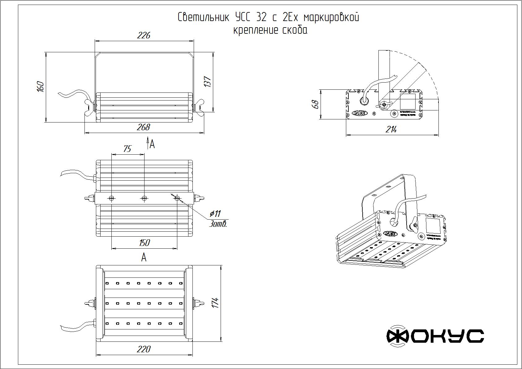 Светодиодный светильник УСС 32 2Ex (скоба) Паспорт Кривая силы света IES-файл Сертификат Чертеж Взрывозащищённый светодиодный светильник УСС 32 2Ex. Потребляемая мощность - 32 Вт, световой поток - 3500 Лм, габариты - 268*214*68 мм, цвет свечения - 4000K, гарантия - 3 года. Технические характеристики: Производитель Фокус Артикул УСС 32 2Ex (консольное крепление) УСС 32 2Ex (потолочное крепление) УСС 32 2Ex (трос) УСС 32 2Ex (скоба) Питающее напряжение, В / диапазон частот Гц AC 170-264 / DC 200-370 / 50-60 Потребляемая мощность, Вт 32 Степень защиты, IP 67 Цвет свечения, К 4000K Габаритные размеры светильника, ВШГ, мм 268*214*68 мм, Масса светильника, нетто, кг 2.3 Световой поток, лм 3500 Тип крепления накладной Страна происхождения Россия Гарантия 3 года Показать больше характеристик: Выберите нужные параметры: 12371 руб. под заказ Количество Купить Добавить к сравнению Светодиодный светильник УСС 32 2Ex (скоба) Светильник УСС 32 взрывозащищенный предназначен для освещения объектов с уровнем взрывозащиты не выше 2Ex nR IIС T6 Gc X и Ex tb IIIC T80°C Db X. Потребляемая мощность от сети переменного тока 220 Вольт— 32Вт. Является заменой светильников РКУ, РСП, СВЛ, НПП, НСП с использованием ртутных ламп ДРЛ-250. Незаменим в местах, где требуется экономия электроэнергии и очень высокая надежность. Уровень взрывозащиты 2Ex nR IIС T6 Gc X и Ex tb IIIC T80°C Db X. У светильника отсутствует стробоскопический эффект, сила света не меняется во всем диапазоне питающих напряжений. Время выхода нарежим менее 1 секунды. УСС 32 выполнен на основе светодиодов японской компании NICHIA. Светильники производятся на основе светодиодов со светоотдачей 120 лм/Вт. Для увеличения надежности светильник разделен на электрически независимые части и имеет независимые системы термостатирования. Также драйверы светодиодов оснащены запатентованной электронной системой защиты от превышения напряжения до 800 Вольт. Корпус выполнен из анодированного алюминиевого профиля со стеклом из противоударного оптического поликарбоната. Весь крепеж выполняется из нержавеющей стали. Светильник крепится на любые консоли с посадочным диаметром трубы до 65 мм. Доступны крепления на трос, потолок и для встраивания в подвесные потолки. Для обеспечения дополнительной экономии и автоматизации светильники могут быть оснащены датчиками освещенности. Данные датчики встраиваются в светильник и обеспечивают автоматическое включение/выключение светильника при заходе/восходе солнца. Функция датчика освещенности особенно актуальна для частных лиц, а также на линиях электропередач, на которых отсутствует линия для освещения. Светильники серии УСС отличают: высокая светоотдача; бесшумность во время работы; отсутствие стробоскопического эффекта и вибрации; стабильность силы света во всем диапазоне питающих напряжений; устойчивость к вибрации и вандализму; широкий диапазон рабочих температур и питающих напряжений; мгновенное включение даже при глубоких отрицательных температурах; срок службы более 20 лет. Выпускается с двумя типами рассеивателей - прозрачным и матовым. С прозрачным стеклом световой поток составляет 3500 лм, с матовым - 2450 лм. Дополнительные характеристики Источник света LED Материал корпуса алюминий Материал рассеивателя поликарбонат Тип кривой силы света (КСС)/угол раскрытия луча Д Потребляемый ток светильника не более, А 0,2 Класс защиты от поражения электрически
