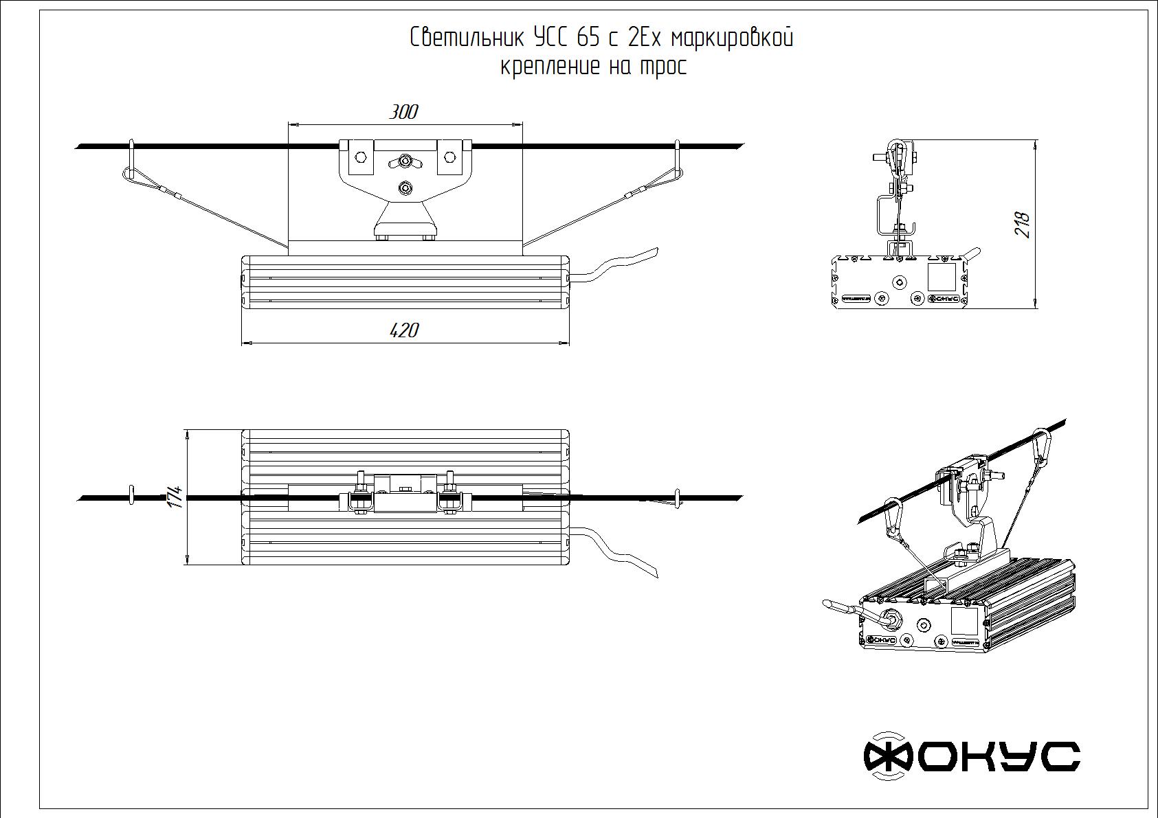 Светодиодный светильник УСС 65 2Ex (трос) Паспорт Кривая силы света IES-файл Сертификат Чертеж Взрывозащищённый светодиодный светильник УСС 65 2Ex. Потребляемая мощность - 65 Вт, световой поток - 7000 Лм, габариты - 420*218*174 мм, цвет свечения - 4000K, гарантия - 3 года. Технические характеристики: Производитель Фокус Артикул УСС 65 2Ex (консольное крепление) УСС 65 2Ex (потолочное крепление) УСС 65 2Ex (скоба) УСС 65 2Ex (трос) Питающее напряжение, В / диапазон частот Гц AC 176-260 / DC 200-370 / 50-60 Потребляемая мощность, Вт 65 Степень защиты, IP 67 Цвет свечения, К 4000K Габаритные размеры светильника, ВШГ, мм 420*218*174 мм, Масса светильника, нетто, кг 4.8 Световой поток, лм 7000 Тип крепления подвесной Страна происхождения Россия Гарантия 3 года Показать больше характеристик: Выберите нужные параметры: 19500 руб. под заказ Количество Купить Добавить к сравнению Светодиодный светильник УСС 65 2Ex (трос) Светильник УСС-65 взрывозащищенный предназначен для освещения объектов с уровнем взрывозащиты не выше 2Ex nR IIС T6 Gc X и Ex tb IIIC T80°C Db X. Потребляемая мощность от сети переменного тока 220 Вольт— 65Вт. Является заменой светильников РКУ, РСП, СВЛ, НПП, НСП с использованием ртутных ламп ДРЛ-250. Незаменим в местах, где требуется экономия электроэнергии и очень высокая надежность. Уровень взрывозащиты 2Ex nR IIС T6 Gc X и Ex tb IIIC T80°C Db X. У светильника отсутствует стробоскопический эффект, сила света не меняется во всем диапазоне питающих напряжений. Время выхода нарежим менее 1 секунды. УСС-65 выполнен на основе светодиодов японской компании NICHIA. Светильники производятся на основе светодиодов со светоотдачей 120 лм/Вт. Для увеличения надежности светильник разделен на электрически независимые части и имеет независимые системы термостатирования. Также драйверы светодиодов оснащены запатентованной электронной системой защиты от превышения напряжения до 800 Вольт. Корпус выполнен из анодированного алюминиевого профиля со стеклом из противоударного оптического поликарбоната. Весь крепеж выполняется из нержавеющей стали. Светильник крепится на любые консоли с посадочным диаметром трубы до 65 мм. Доступны крепления на трос, потолок и для встраивания в подвесные потолки. Для обеспечения дополнительной экономии и автоматизации светильники могут быть оснащены датчиками освещенности. Данные датчики встраиваются в светильник и обеспечивают автоматическое включение/выключение светильника при заходе/восходе солнца. Функция датчика освещенности особенно актуальна для частных лиц, а также на линиях электропередач, на которых отсутствует линия для освещения. Светильники серии УСС отличают: высокая светоотдача; бесшумность во время работы; отсутствие стробоскопического эффекта и вибрации; стабильность силы света во всем диапазоне питающих напряжений; устойчивость к вибрации и вандализму; широкий диапазон рабочих температур и питающих напряжений; мгновенное включение даже при глубоких отрицательных температурах; срок службы более 20 лет. Выпускается с двумя типами рассеивателей - прозрачным и матовым. С прозрачным стеклом световой поток составляет 7000 лм, с матовым - 4900 лм. Дополнительные характеристики Источник света LED Материал корпуса алюминий Материал рассеивателя поликарбонат Тип кривой силы света (КСС)/угол раскрытия луча Д Производитель светодиодов Nichia Потребляемый ток светильника не более, А 0,4 Класс защ