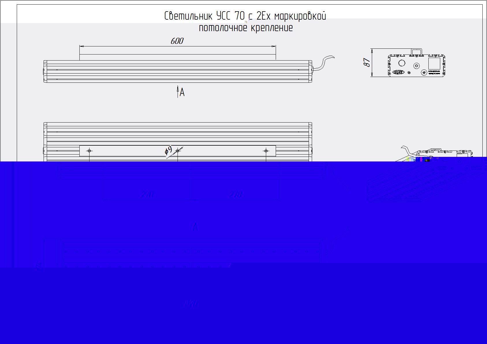 Светодиодный светильник УСС 70 2Ex (потолочное крепление) Паспорт Кривая силы света Сертификат Чертеж Взрывозащищённый светодиодный светильник УСС 70 2Ex. Потребляемая мощность - 75 Вт, световой поток - 9800 Лм, габариты - 820*174*87 мм, цвет свечения - 4000K, гарантия - 3 года. Технические характеристики: Производитель Фокус Артикул УСС 70 2Ex (консольное крепление) УСС 70 2Ex (трос) УСС 70 2Ex (скоба) УСС 70 2Ex (потолочное крепление) Питающее напряжение, В / диапазон частот Гц AC 170-264 / DC 200-370 / 50-60 Потребляемая мощность, Вт 75 Степень защиты, IP 67 Цвет свечения, К 4000K Габаритные размеры светильника, ВШГ, мм 820*174*87 мм, Масса светильника, нетто, кг 7 Световой поток, лм 9800 Тип крепления накладной Страна происхождения Россия Гарантия 3 года Показать больше характеристик: Выберите нужные параметры: 25626 руб. под заказ Количество Купить Добавить к сравнению Светодиодный светильник УСС 70 2Ex (потолочное крепление) Светильник УСС-70 взрывозащищенный предназначен для освещения объектов с уровнем взрывозащиты не выше 2Ex nR IIС T6 Gc X и Ex tb IIIC T80°C Db X. Потребляемая мощность от сети переменного тока 220 Вольт— 75Вт. Является заменой светильников РКУ, РСП, СВЛ, НПП, НСП с использованием ртутных ламп ДРЛ-250. Незаменим в местах, где требуется экономия электроэнергии и очень высокая надежность. Уровень взрывозащиты 2Ex nR IIС T6 Gc X и Ex tb IIIC T80°C Db X. У светильника отсутствует стробоскопический эффект, сила света не меняется во всем диапазоне питающих напряжений. Время выхода нарежим менее 1 секунды. УСС-70 выполнен на основе светодиодов японской компании NICHIA. Светильники производятся на основе светодиодов со светоотдачей 120 лм/Вт. Для увеличения надежности светильник разделен на электрически независимые части и имеет независимые системы термостатирования. Также драйверы светодиодов оснащены запатентованной электронной системой защиты от превышения напряжения до 800 Вольт. Корпус выполнен из анодированного алюминиевого профиля со стеклом из противоударного оптического поликарбоната. Весь крепеж выполняется из нержавеющей стали. Светильник крепится на любые консоли с посадочным диаметром трубы до 65 мм. Доступны крепления на трос, потолок и для встраивания в подвесные потолки. Для обеспечения дополнительной экономии и автоматизации светильники могут быть оснащены датчиками освещенности. Данные датчики встраиваются в светильник и обеспечивают автоматическое включение/выключение светильника при заходе/восходе солнца. Функция датчика освещенности особенно актуальна для частных лиц, а также на линиях электропередач, на которых отсутствует линия для освещения. Светильники серии УСС отличают: высокая светоотдача; бесшумность во время работы; отсутствие стробоскопического эффекта и вибрации; стабильность силы света во всем диапазоне питающих напряжений; устойчивость к вибрации и вандализму; широкий диапазон рабочих температур и питающих напряжений; мгновенное включение даже при глубоких отрицательных температурах; срок службы более 20 лет. Выпускается с двумя типами рассеивателей - прозрачным и матовым. С прозрачным стеклом световой поток составляет 9800 лм, с матовым - 6860 лм. Дополнительные характеристики Источник света LED Материал корпуса алюминий Материал рассеивателя поликарбонат Тип кривой силы света (КСС)/угол раскрытия луча Д Потребляемый ток светильника не более, А 0,5 Класс защиты от 
